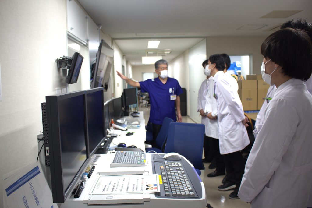 令和7年12月10日に山口大学医学部4年生の臨床研修病院見学バスツアーが開催されました。当院には8名の学生さんにお越しいただき、院内各所を見学していただきました。